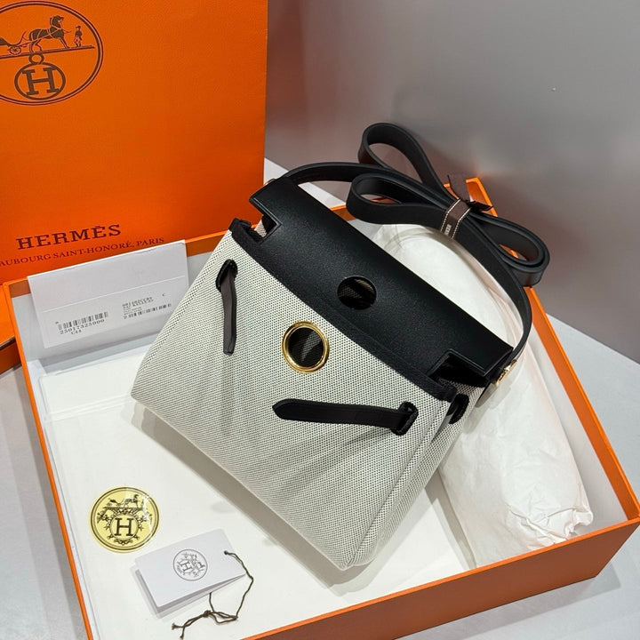 HERMES 25S MINI HERBAG 20 IN SAGE GRAY CANVAS GOLD HARDWARE