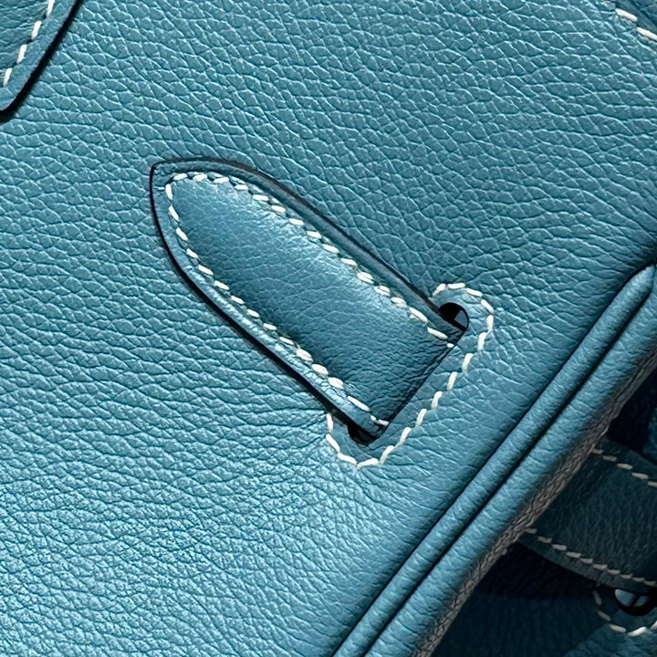 HERMES 25S SHOULDER BIRKIN 29 IN DENIM BLUE CALFSKIN SILVER HARDWARE