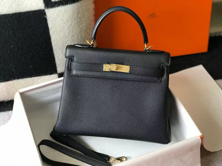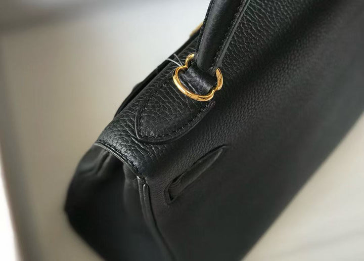 HM KELLY BAG 28 IN BLACK TOGO LEATHER GOLD HARDWARE