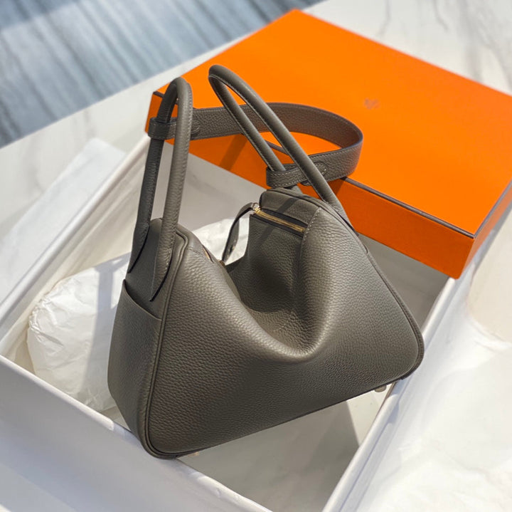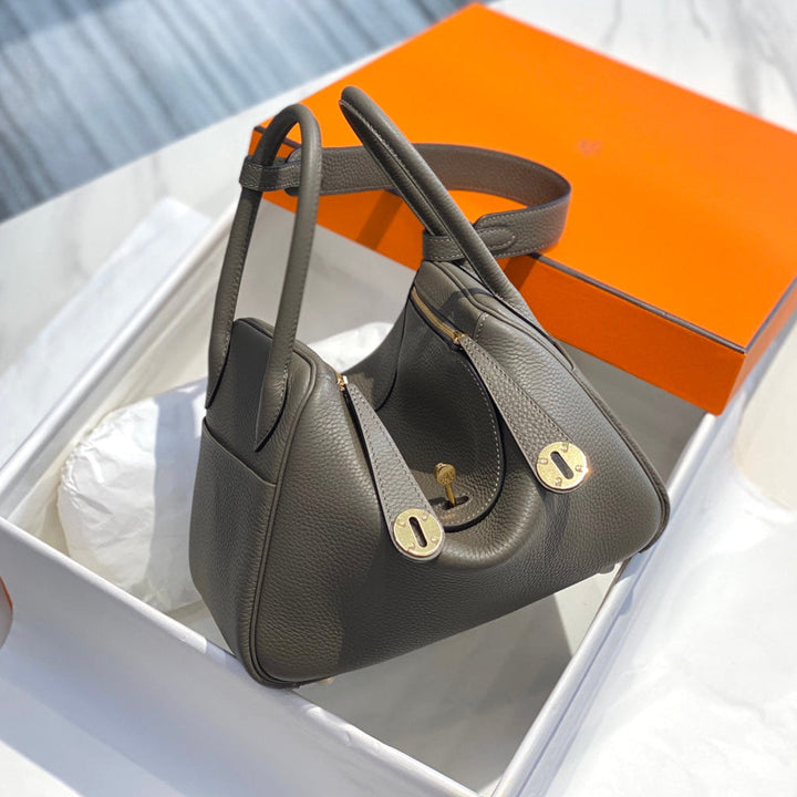 HM LINDY 30 BAG IN SEPIA BROWN CALFSKIN GOLD HARDWARE