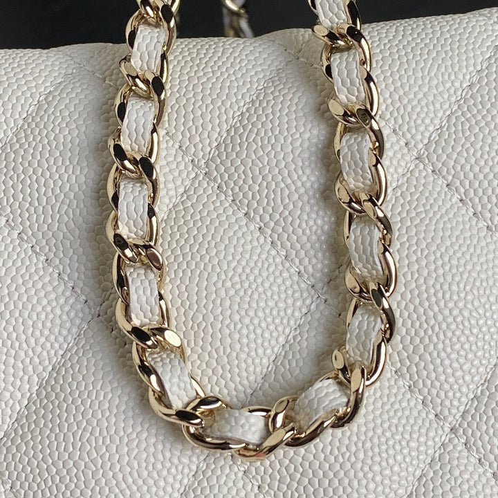HOBO BAG 21 IN WHITE GRAINED CALFSKIN GOLD HARDWARE