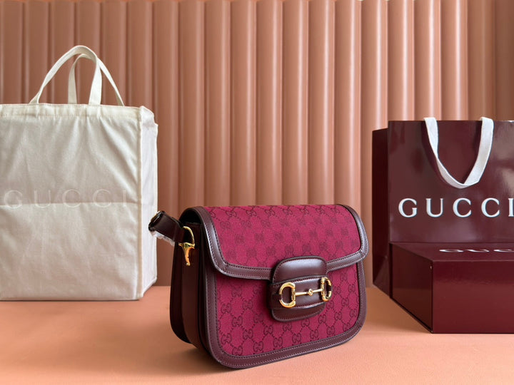 HORSEBIT 1955 SHOULDER BAG 25 IN WINE RED CANVAS AND CALFSKIN GOLD HARDWARE
