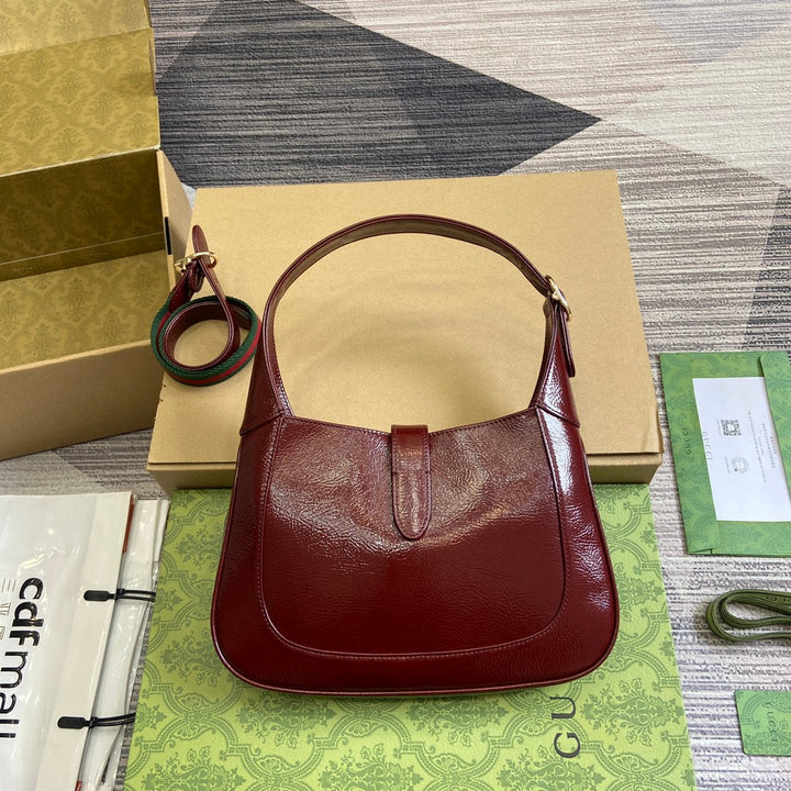 JACKIE SMALL SHOULDER BAG 27 IN WINE RED CRACKED LACQUER CALFSKIN GOLD HARDWARE