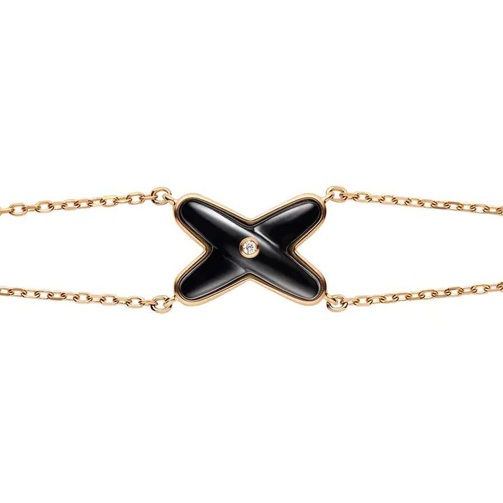 ˇShiny JewelryˇJEUX BRACELET ONYX PINK GOLD 1 DIAMOND