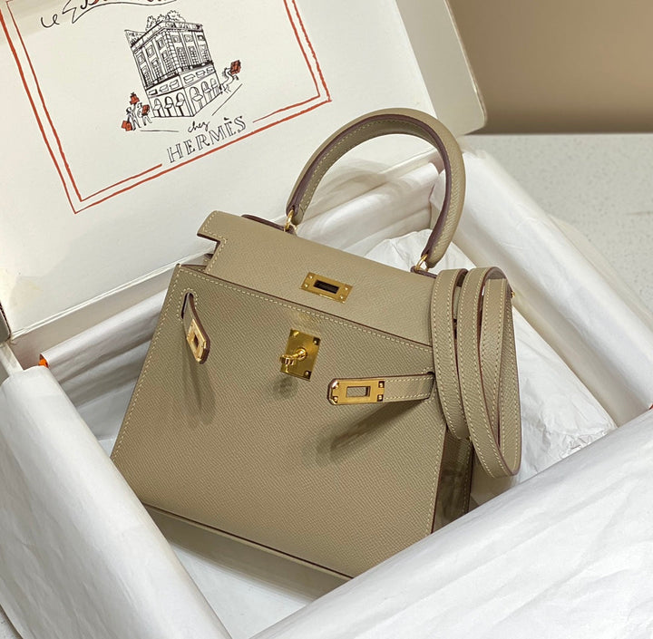 KELLY MINI 20 BAG IN TAN BROWN CALFSKIN WITH GOLD HARDWARE (MADE-TO-ODER)
