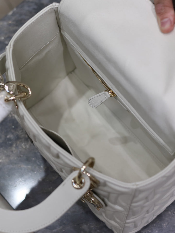 LADY BAG 24 IN WHITE GRAPHIC CANNAGE CALFSKIN PALE GOLD-FINISH METAL CHARMS