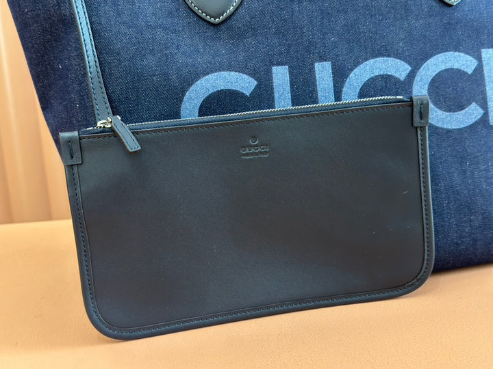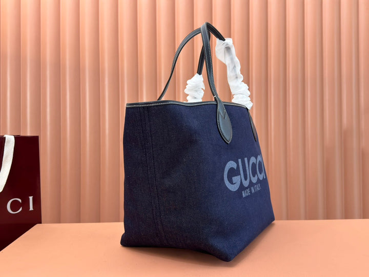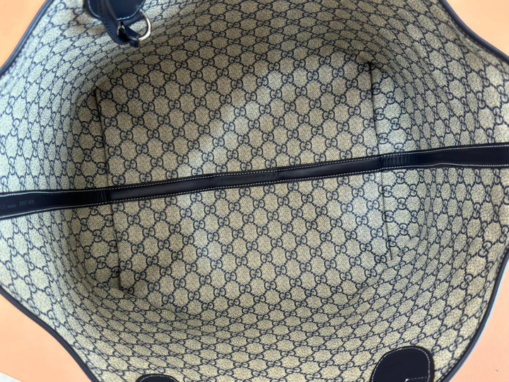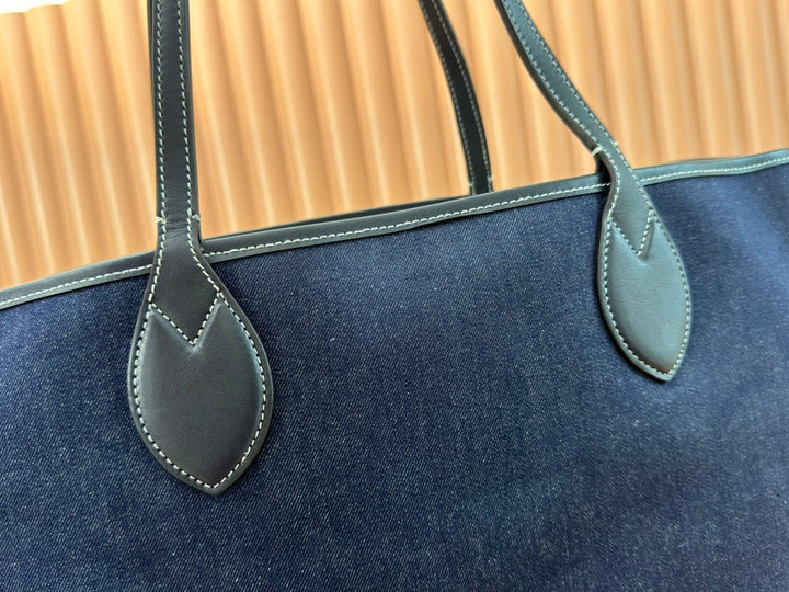 LARGE TOTISSIMA REVERSIBLE TOTE 30.5 IN DARK BLUE DENIM ONE SIDE BEIGE AND BLUE CALFSKIN ON THE OTHER