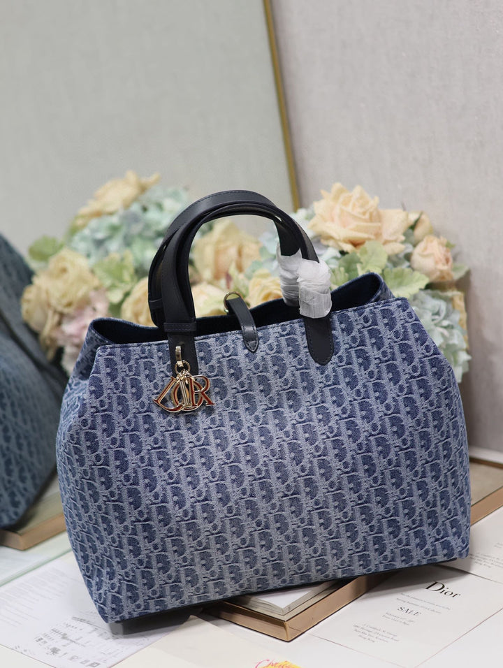 LARGE TOUJOURS 37 BLUE DENIM OBLIQUE JACQUARD
