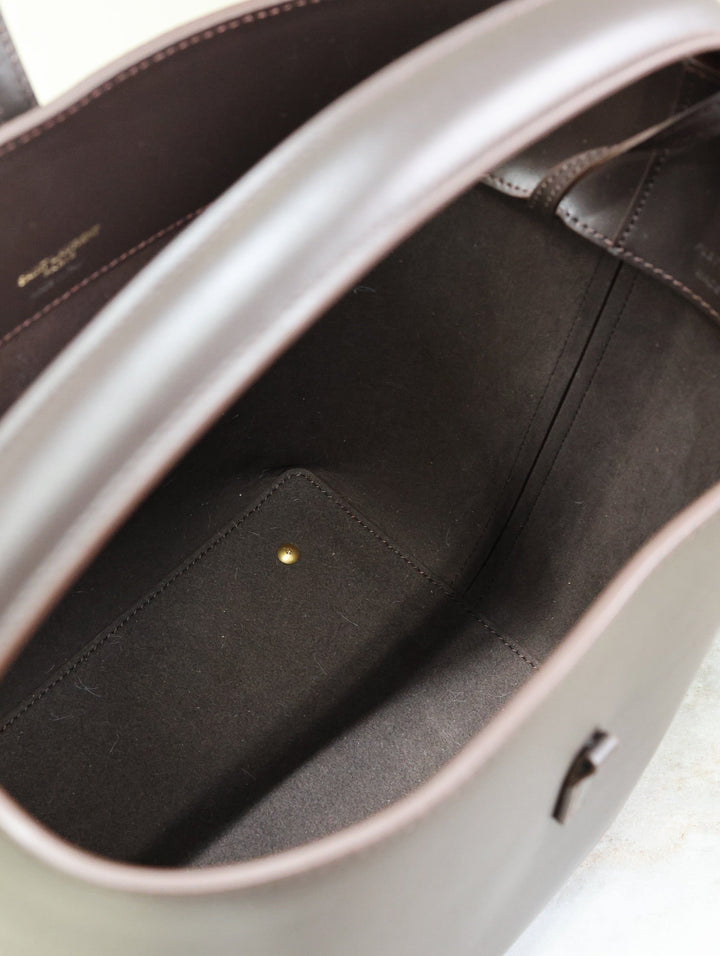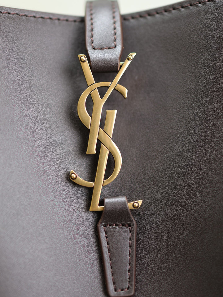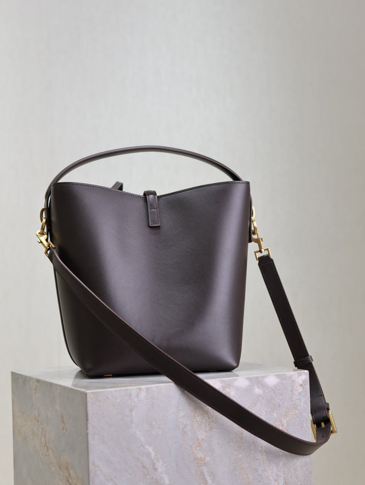 LE 37 MEDIUM BUCKET BAG 26 IN BRUNETTE BROWN CALFSKIN GOLD HARDWARE