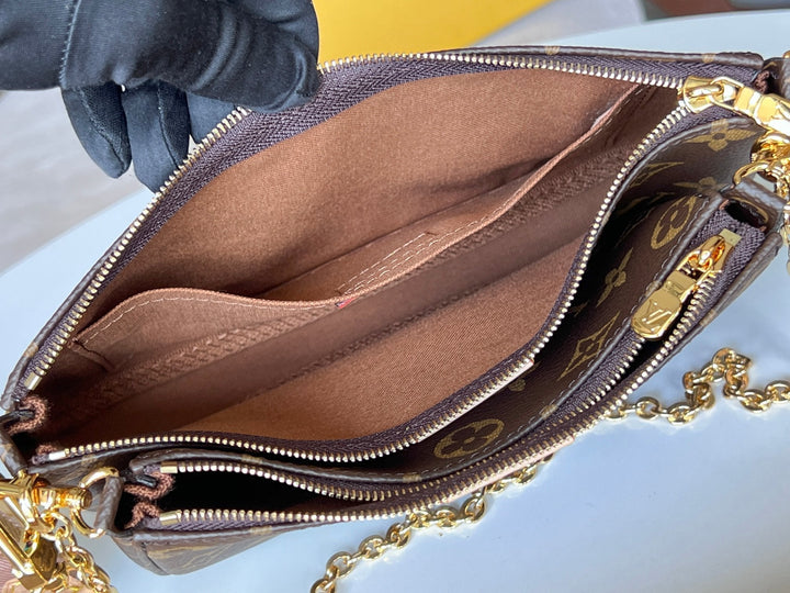 LV 25S MULTI POCHETTE ACCESSOIRES 25 IN BROWN MONOGRAM COATED CANVAS PINK STRAP