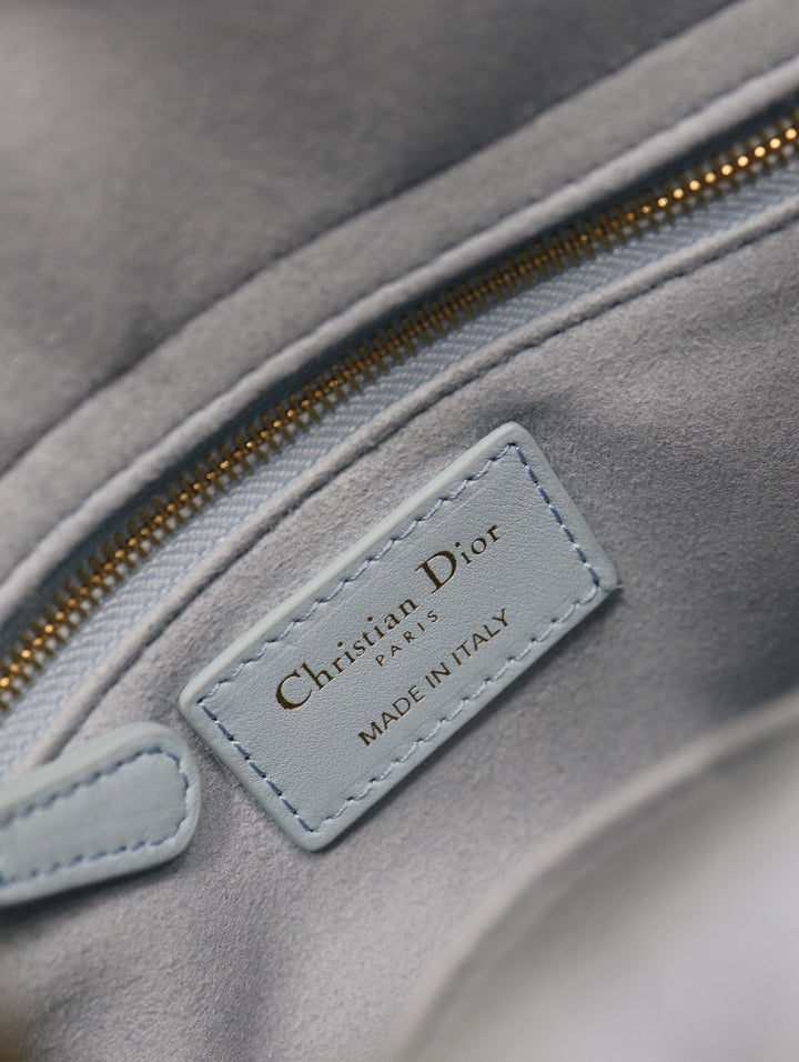 MEDIUM LADY BAG 20 IN BABY BLUE QUILTED MACROCANNAGE CALFSKIN GREEN STRAP