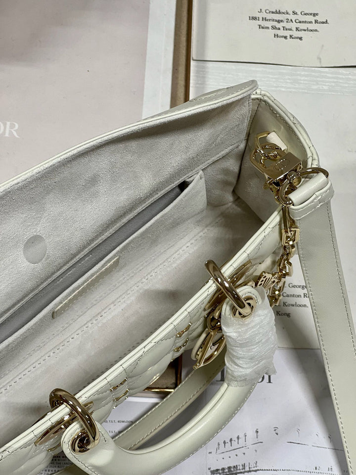 MEDIUM LADY D-JOY 26 BUTTERFLY STUD WHITE LAMBSKIN
