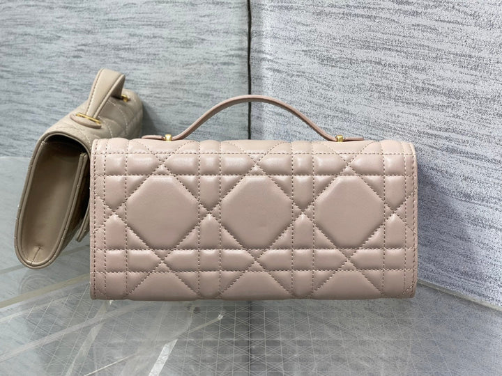 MISS CARO TOP HANDLE POUCH 24 IN BISQUE BEIGE MACROCANNAGE LAMBSKIN