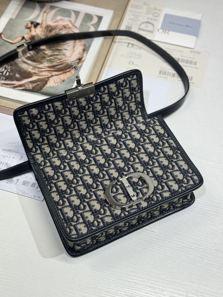 MONTAIGNE EAST-WEST BAG 24 IN BLACK LAMBSKIN AND MONOGRAM OBLIQUE JACQUARD