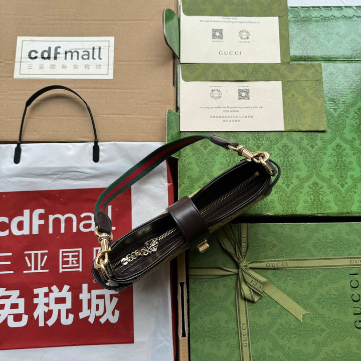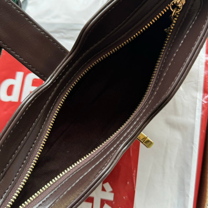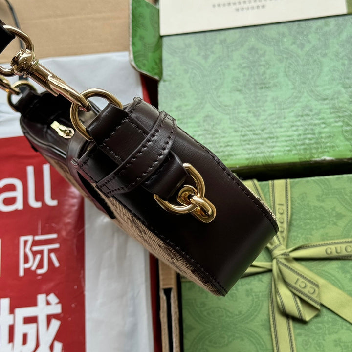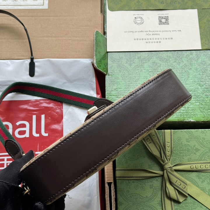 MOON SIDE SHOULDER BAG 24 IN BEIGE CANVAS AND DARK BROWN LEATHER TRIM