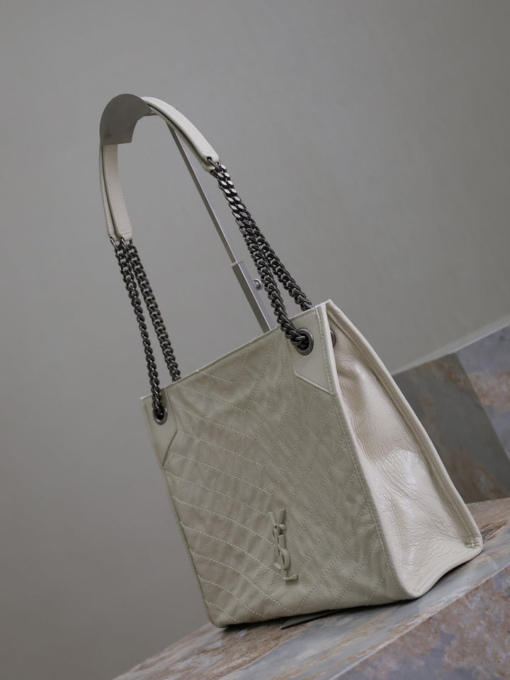 NIKI SHOPPING BAG 33 IN WHITE CRUMPLED CALFSKIN