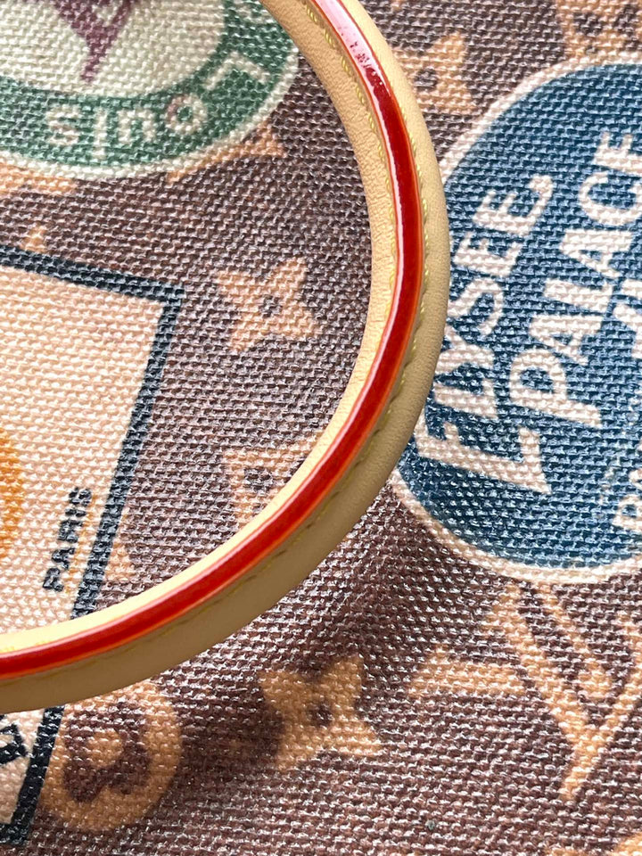 ONTHEGO VOYAGE 35 IN BROWN MONOGRAM CANVAS WITH VINTAGE HOTEL LABELS