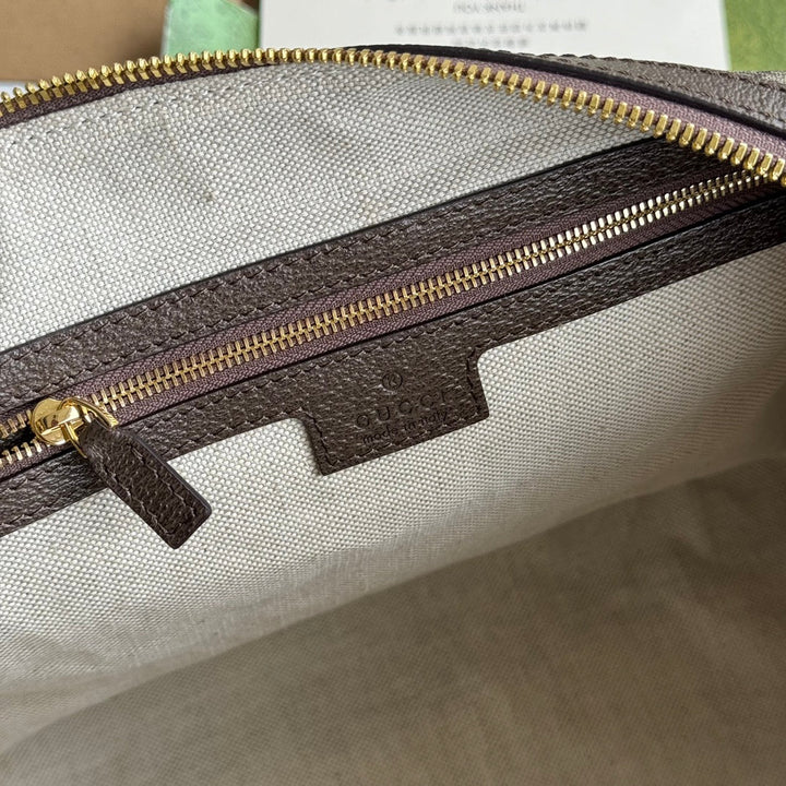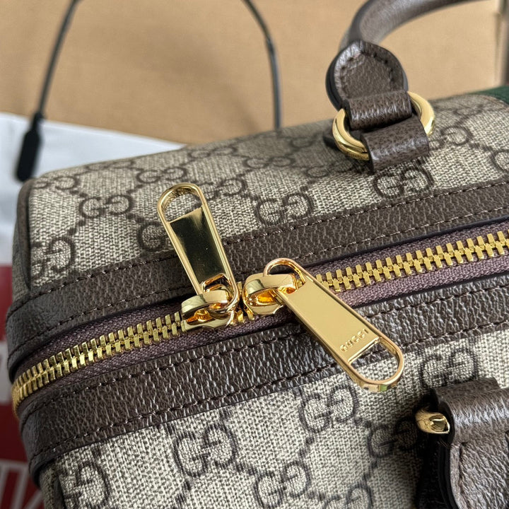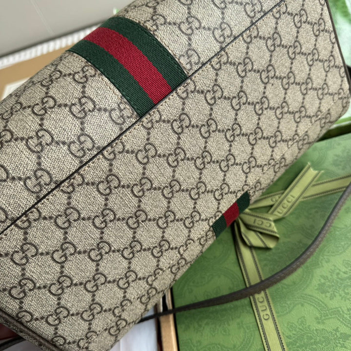 OPHIDIA LARGE BOSTON BAG 31 IN BEIGE EBONY GG BROWN CALFSKIN TRIM