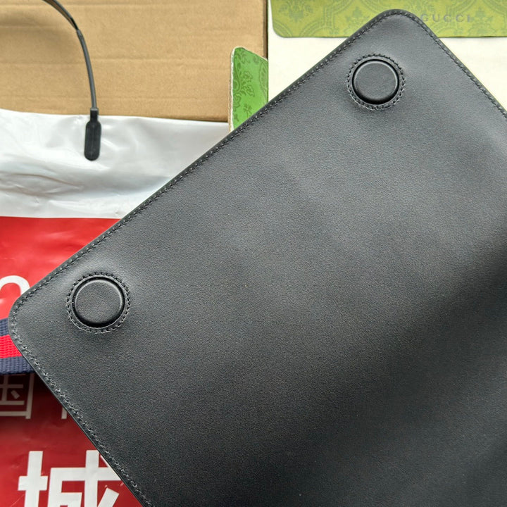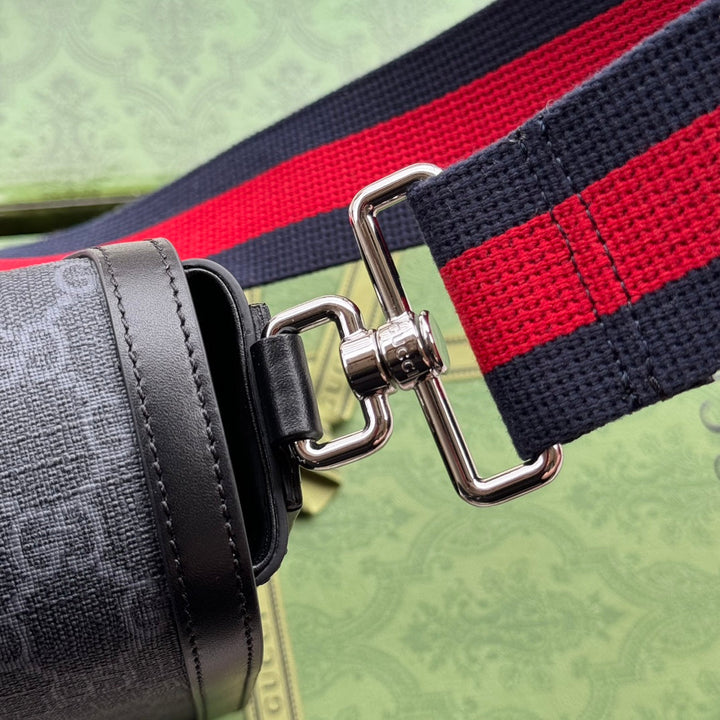 OPHIDIA MEDIUM MESSENGER FLAP BAG 27 IN DARK GREY AND BLACK CALFSKIN