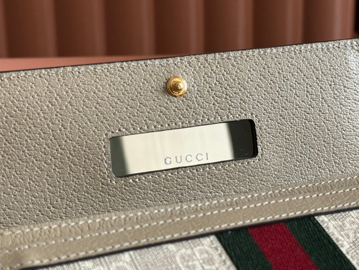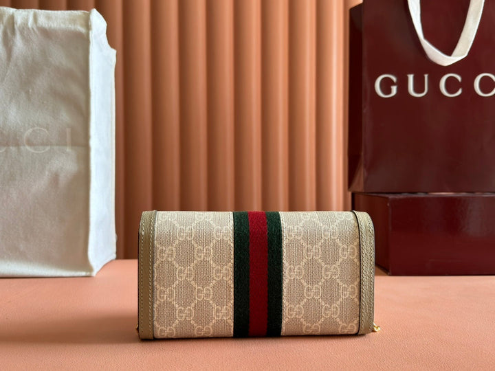 OPHIDIA WALLET ON GOLD CHAIN 19 IN LIGHT BEIGE GG CANVAS AND LIGHT BROWN CALFSKIN