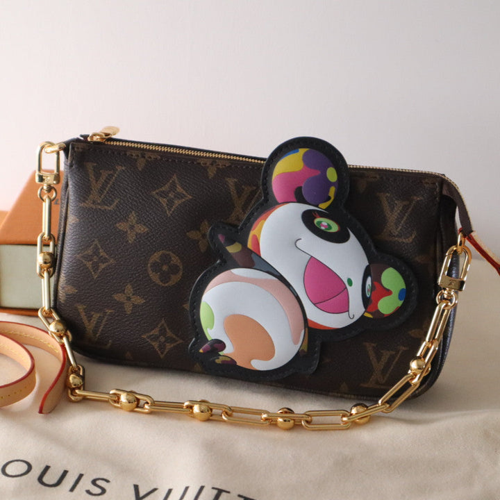 PANDA POCHETTE BAG 22 IN BROWN MONOGRAM COATED CANVAS