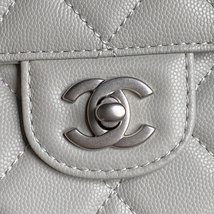 RETRO STYLE FLAP BAG 19 IN RHINO GRAY GRAINED CALFSKIN GOLD HARDWARE