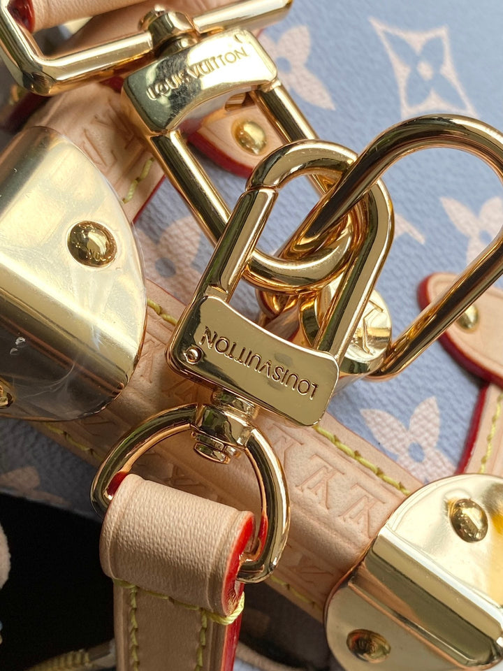 SIDE TRUNK 21 IN GRAY CREAM MONOGRAM TRIANON CANVAS GOLD HARDWARE