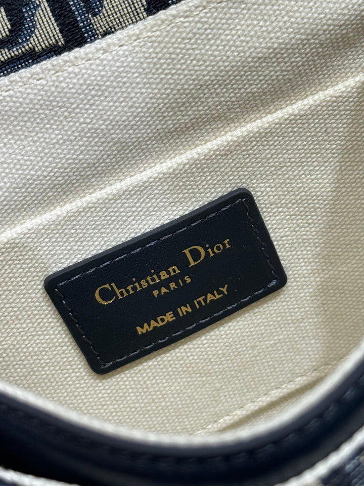 SMALL 19 MONTAIGNE AVENUE TOP HANDLE BAG BLUE DIOR OBLIQUE JACQUARD AND BLACK SMOOTH CALFSKIN