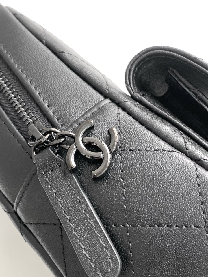 SMALL BACKPACK 25 IN BLACK CALFSKIN BLACK CHAIN