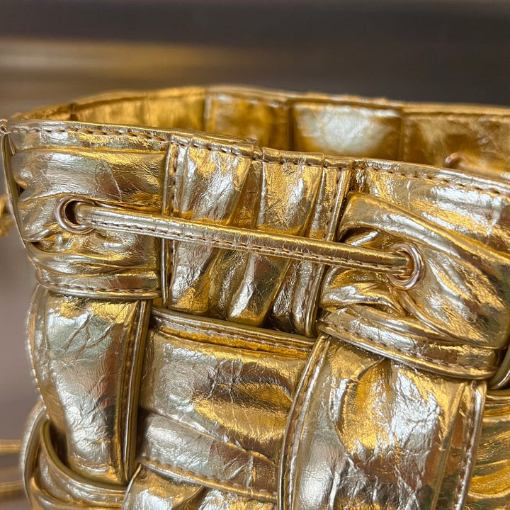 SMALL CASSETTE BUCKET 18 IN GOLD METALLIC SOFT LAMBSKIN