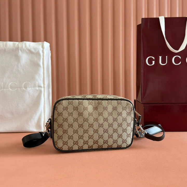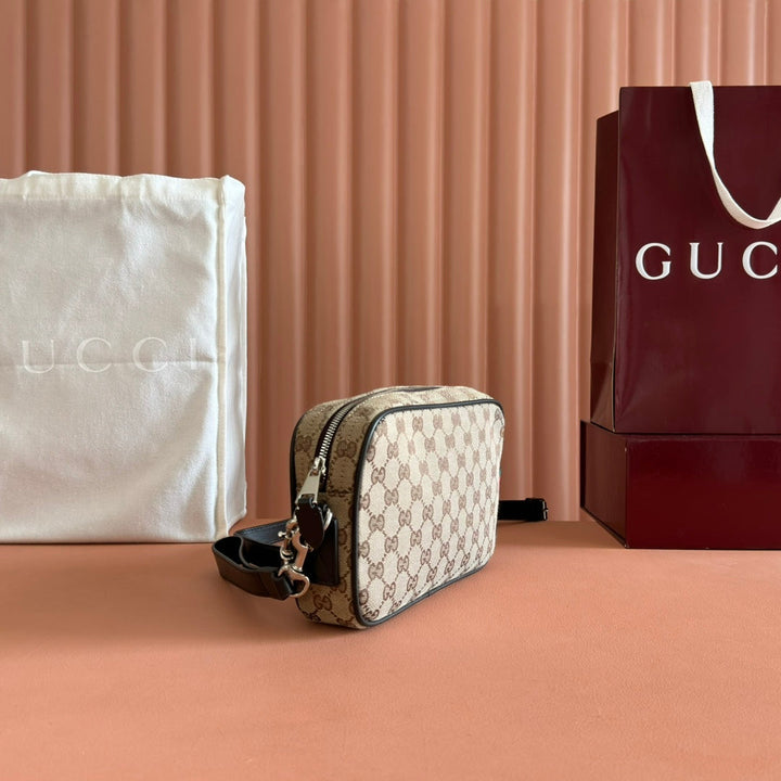 SMALL CROSSBODY BAG 23.5 IN BEIGE AND DARK BROWN GG CANVAS