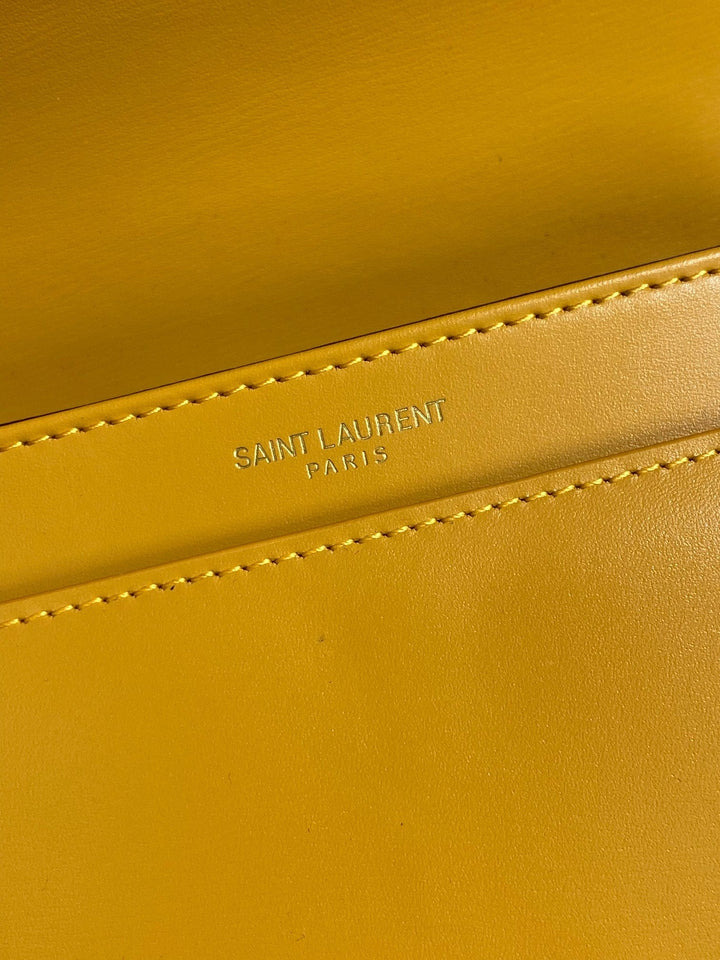 SOLFERINO SMALL SATCHEL 19 IN SAFFRON YELLOW CALFSKIN GOLD HARDWARE