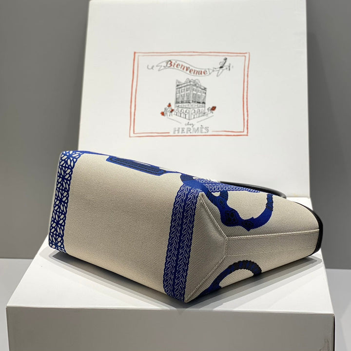 STEEPLE 28 BAG IN OFF-WHITE MIX BLUE CANVAS AND BLACK CALFSKIN