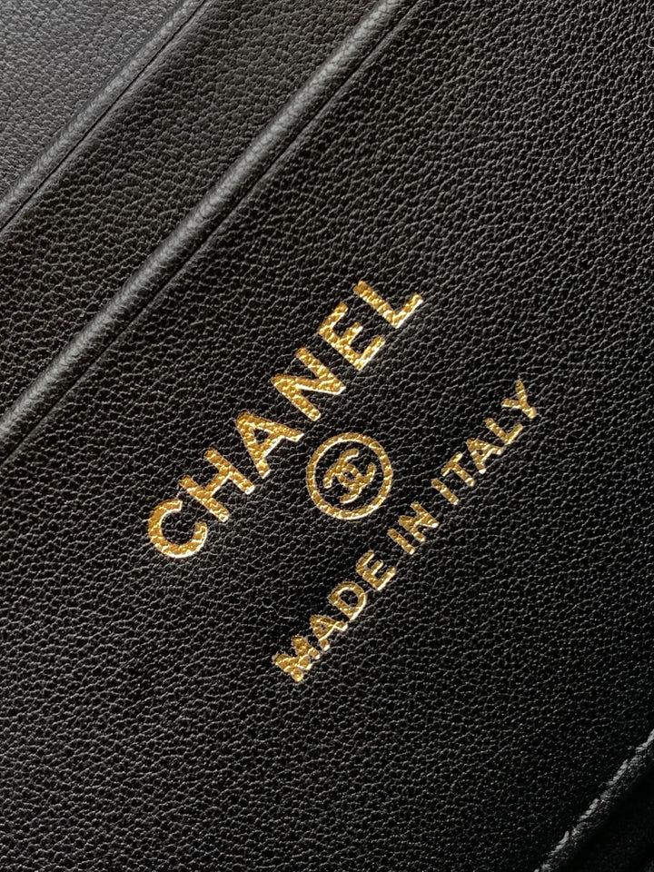 VANITY CASE 19 IN BLACK MIX WHITE QUILTED TWEED GOLD HARDWARE